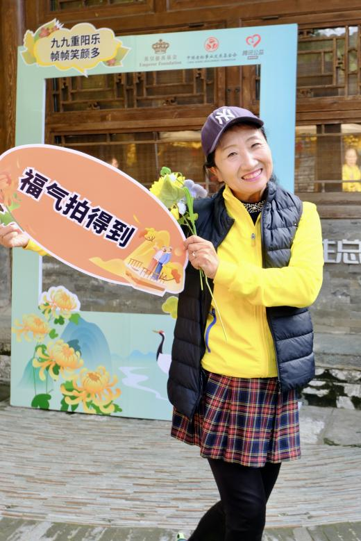 随着手工环节的温馨收尾,活动迎来了另一重感动——专属肖像摄影时刻。摄影师,精心布置了传统雅致与轻松趣味的双主题场景,为每一位老人拍摄个人肖像与生动合影。