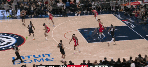 来自布克、马威、狄龙的三人stack起手,狄龙这次没有拆开到外线,而是挡住了祖巴茨,哈登也没有回到篮下换防,这让马威得到篮下的空位。