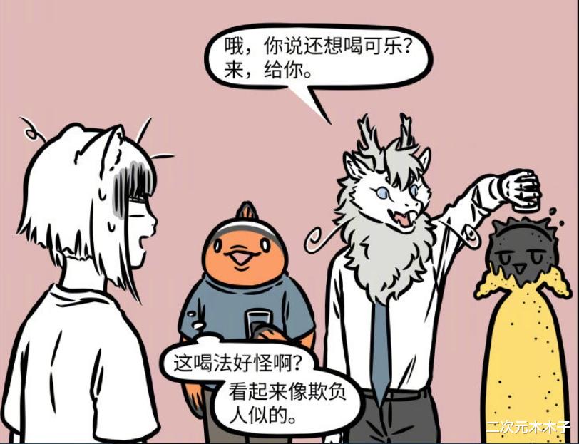 而就在这个时候,敖烈感知到海绵精想要喝可乐,作为举办本次聚会的族人,敖烈毫不犹豫将整杯可乐从海绵精的头顶浇下去,从敖烈和海绵精的表情可以看出,敖烈确实是想给海绵精喝可乐。