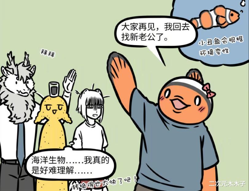 而这就与小丑鱼的习性有关,小丑鱼会根据环境进行性别转换,而敖烈这位朋友,在得知妻子被吃掉后,才主动转变为女性。