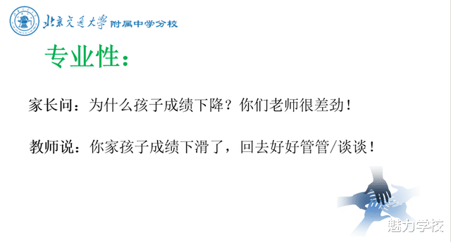 当家长质疑老师时,老师要能共情到家长的情绪,给家长的情绪“命名”,看到他的真需求,帮助家长厘清问题,并且共同探讨解决方案。
