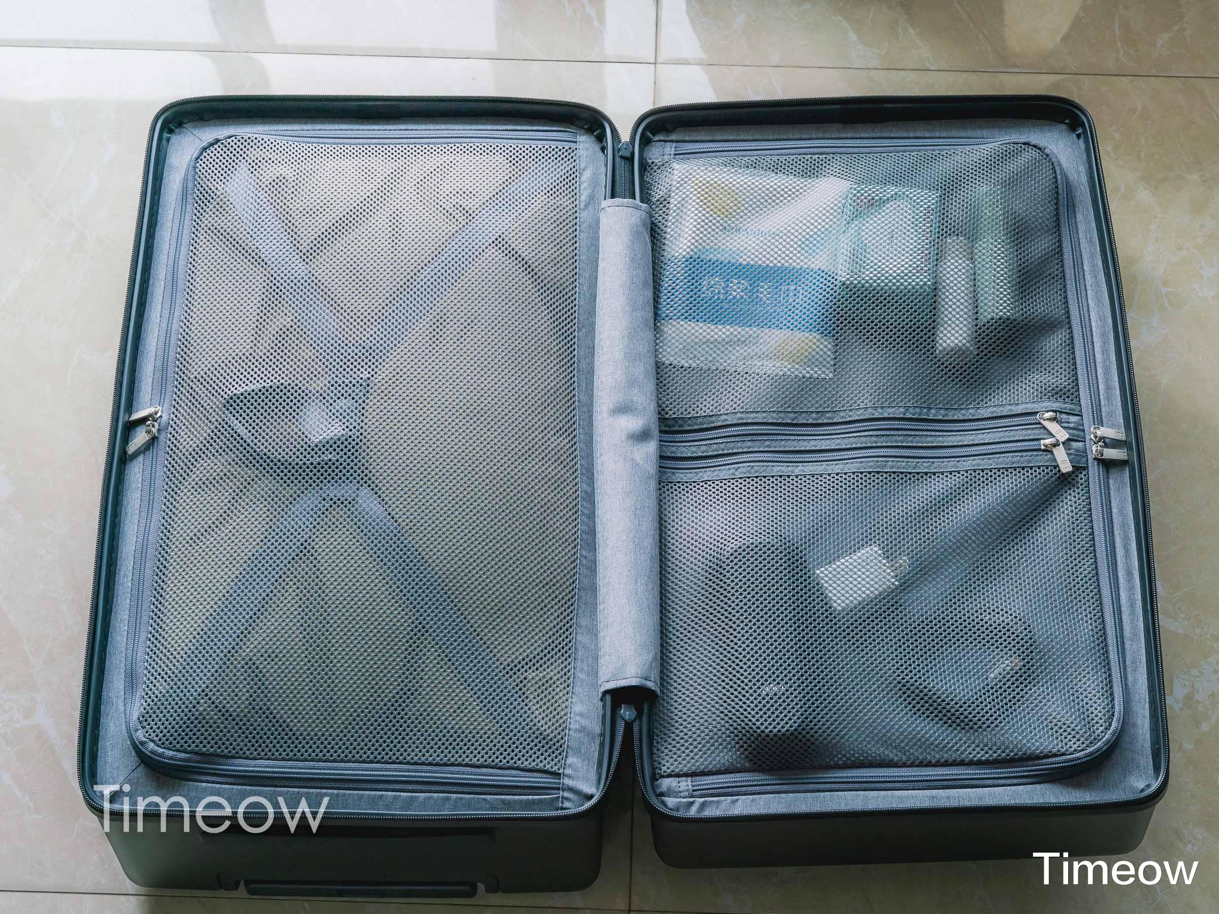 拿出来后,地平线8号Trunk系列行李箱给我的第一印象是方正规整,完全不同于常见行李箱的圆润弧线。这种设计不仅充满了个性,也为其内部的大容量打下了基础。