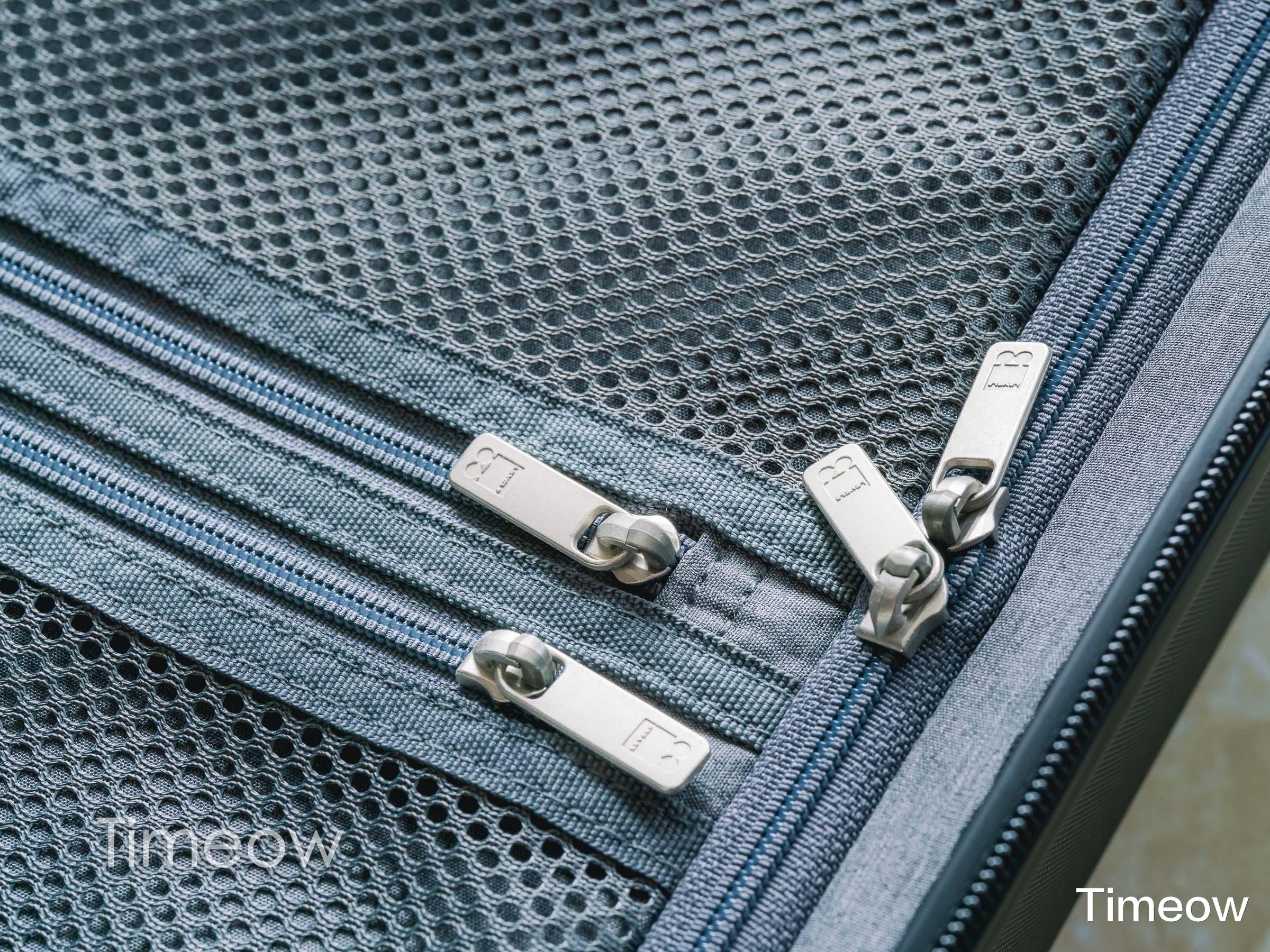 箱内两侧都配置了弹力束带和网袋隔层。值得一提的是,拉链是YKK的,这些小细节充分体现了品牌对品质的把控。