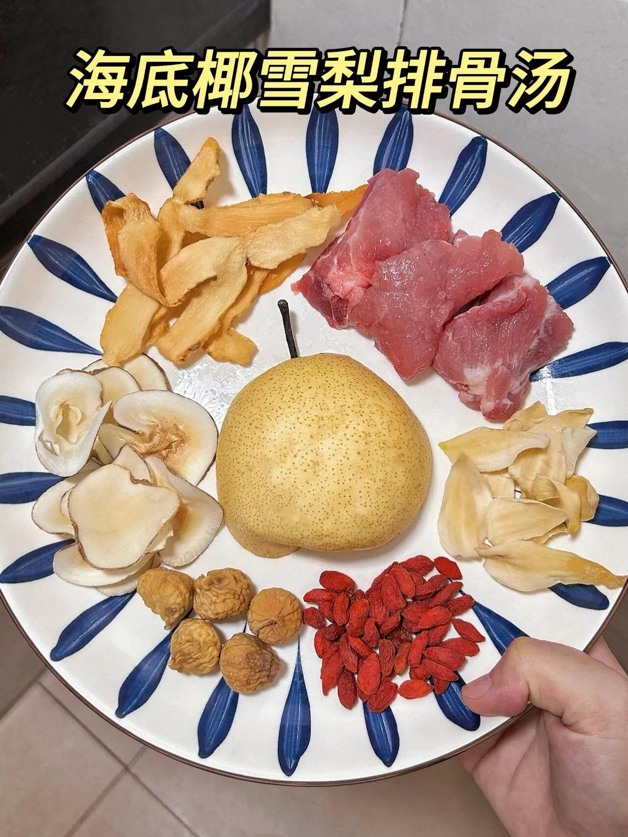 调汤底是这道菜的灵魂注入仪式。取个砂锅(没有就用普通汤锅),放入处理好的排骨、海底椰片、半颗切块的雪梨,再扔进两颗红枣、五粒枸杞,像给大海搭配新朋友。倒入没过食材2指节的清水,这个水量煮出来的汤最浓郁。