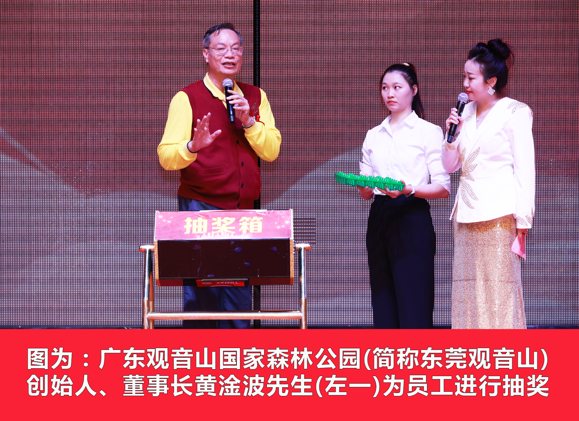 东莞观音山人在黄淦波董事长的领导下,他们是一支坚强的、有战斗力的、有活力的团队,有四五百号的员工,26年一起奋斗,26年艰苦走过来,打造文学的名山、书法的名山、美术的名山、姻缘的名山,以及观音文化的名山,尤其是在打造楹联文化名山,作了很突出的贡献。