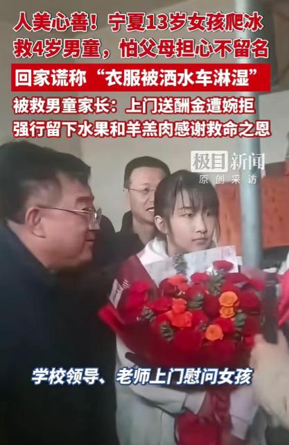 一个13岁的女孩,在寒冬中跳入冰窟救起4岁男童,而后悄然离去,甚至对父母撒了一个“被洒水车淋湿”的善意谎言。直到被救者家属寻上门,这场惊心动魄的壮举才为人所知。