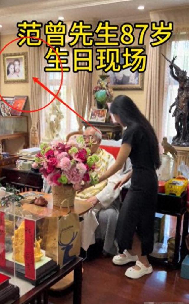可让人意外的是,在这么一个充满古董气息的家里,墙上却挂着前妻楠莉的照片,这照片就像是一个无声的诉说者,诉说着范曾对楠莉的怀念。