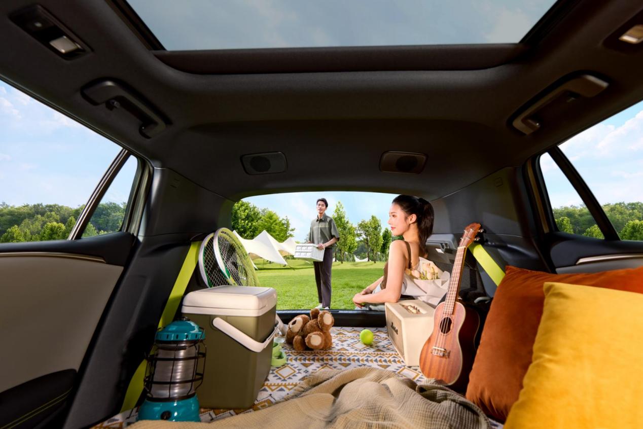 进入座舱,这份精致感进一步延伸为实用的舒适体验。全新森野荧光风格内饰将自然美学与功能需求巧妙融合,无论是触摸时的质感,还是视觉上的色彩搭配,都能带来舒适的感官体验;流光环绕氛围灯可智能调节亮度与色调,夜晚行车时能悄然烘托出温馨氛围,让通勤或长途出行更添一份惬意。储物设计同样贴心,36处储物空间可轻松收纳钥匙、耳机等小物件,后备箱容积能从353L扩容至1126L,周末和朋友去露营时,帐篷、折叠椅、零食箱等装备都能轻松装下,无需为收纳问题妥协。