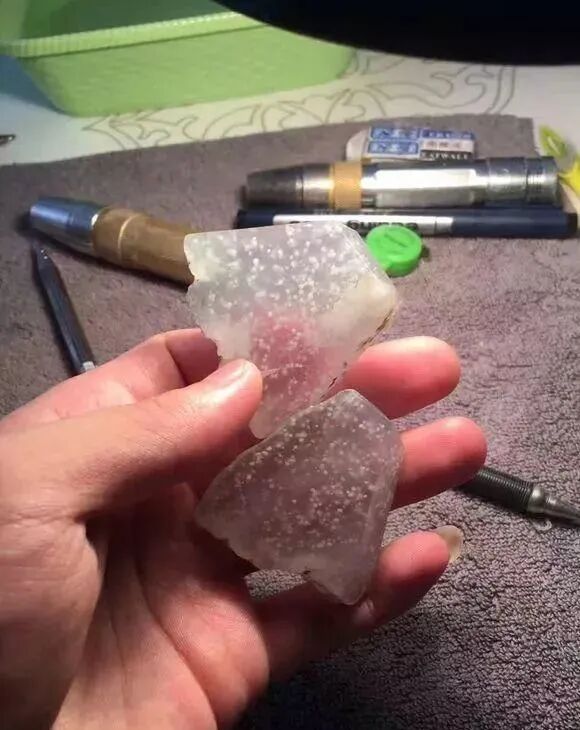 翡翠在珠宝界具有独特魅力,因此很多人见到心仪翡翠,就会情不自禁的将它入手佩戴在身上或者收藏。翡翠分好坏,由于开采量大,品质好的翡翠是越来越少。这是一块出自缅甸莫西沙石头,原本是全赌料,觉得它是块好料,没犹豫太多就直接去擦了个小口。一擦不得了,竟然出高品质种水料。