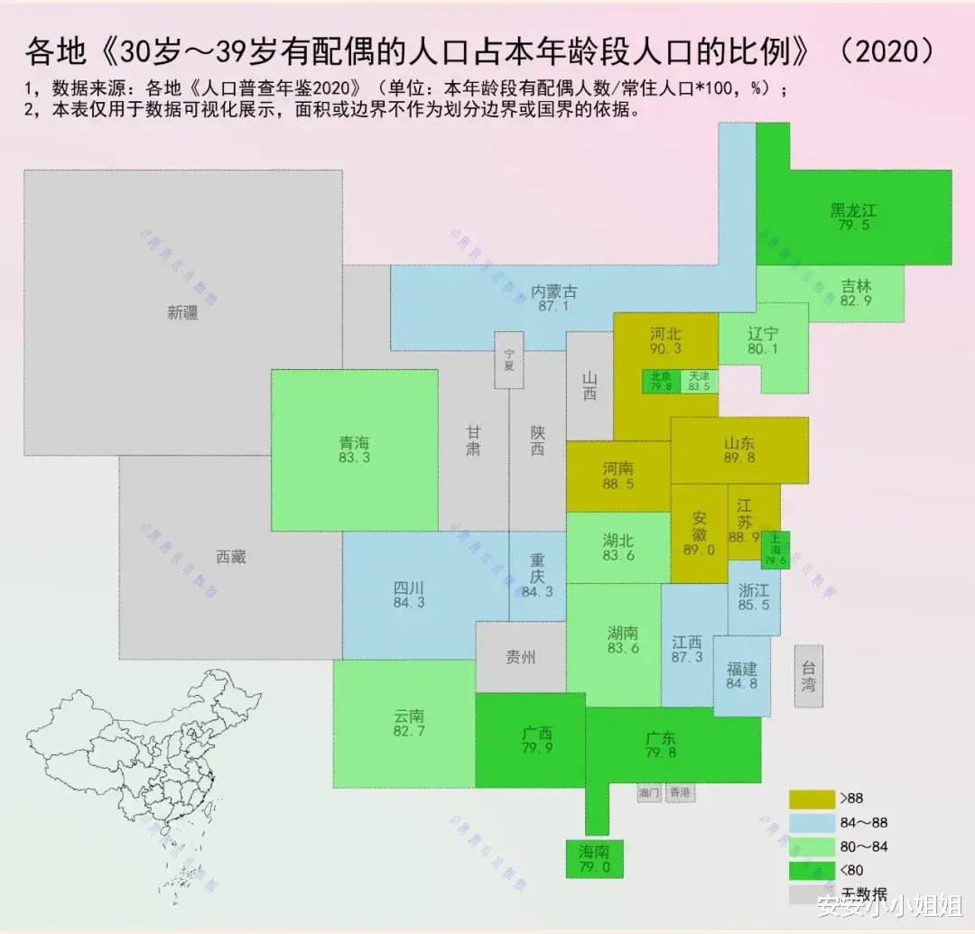 根据2020年人口普查数据,当我们聚焦30岁至39岁这一群体,发现一个显著的事实:在全国范围内,绝大多数人在这一年龄段已经步入婚姻殿堂。