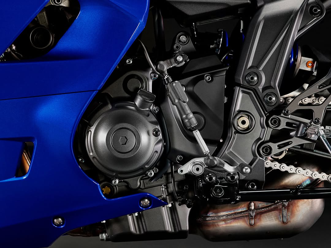 新款雅马哈YZF-R7的核心动力依然为689cc CP2直列双缸发动机,最大马力73匹,最大扭矩67牛米。新款雅马哈YZF-R7配备了全新的YCC-T(雅马哈芯片控制节气门),ECU会根据骑手的控制油门程度来计算转速的平顺性,操控更加线性。