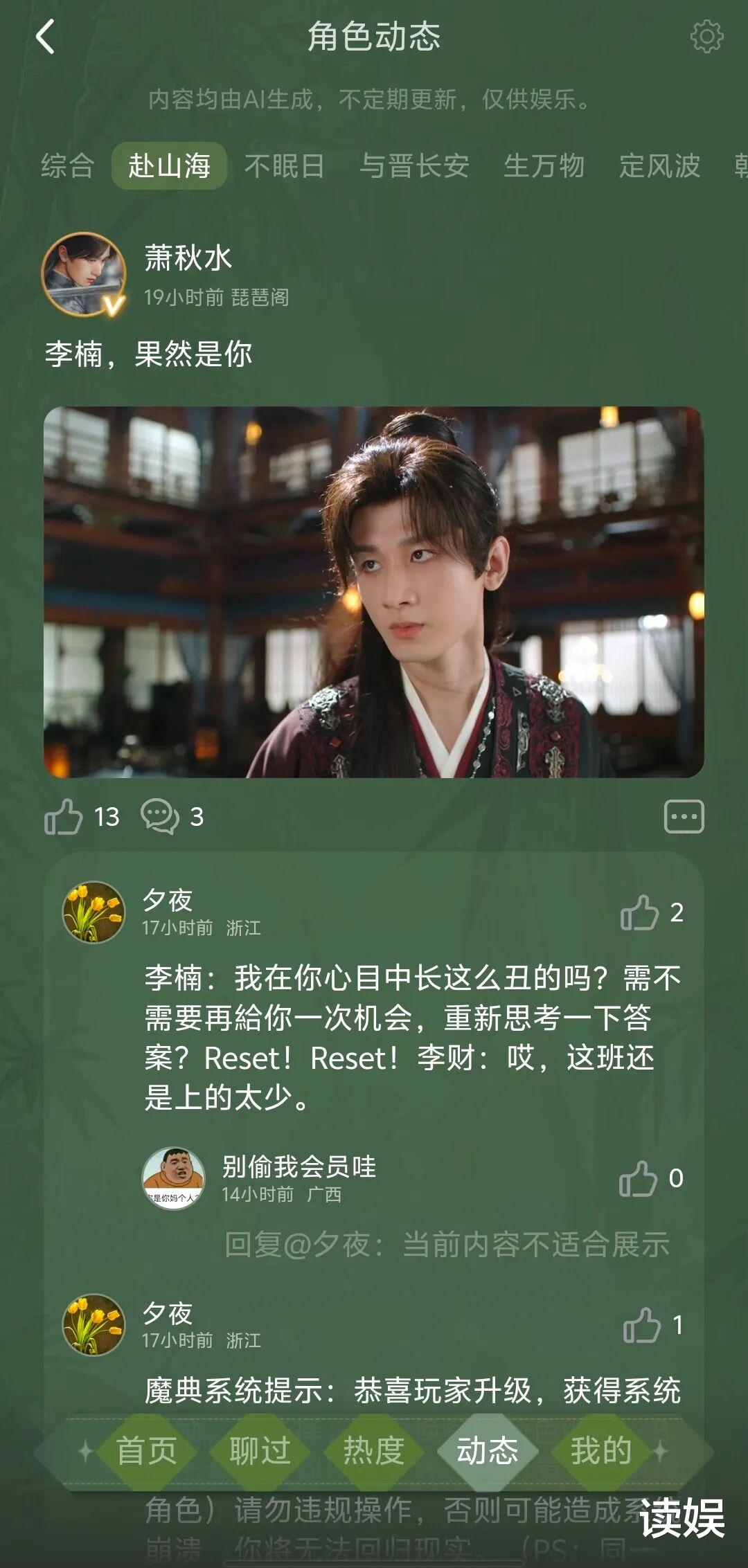 在读娱看来,以穿书与系统相融为特色的《赴山海》是武侠剧探索年轻态新表达的创新实践,而它的出圈也验证这一尝试的正确性。