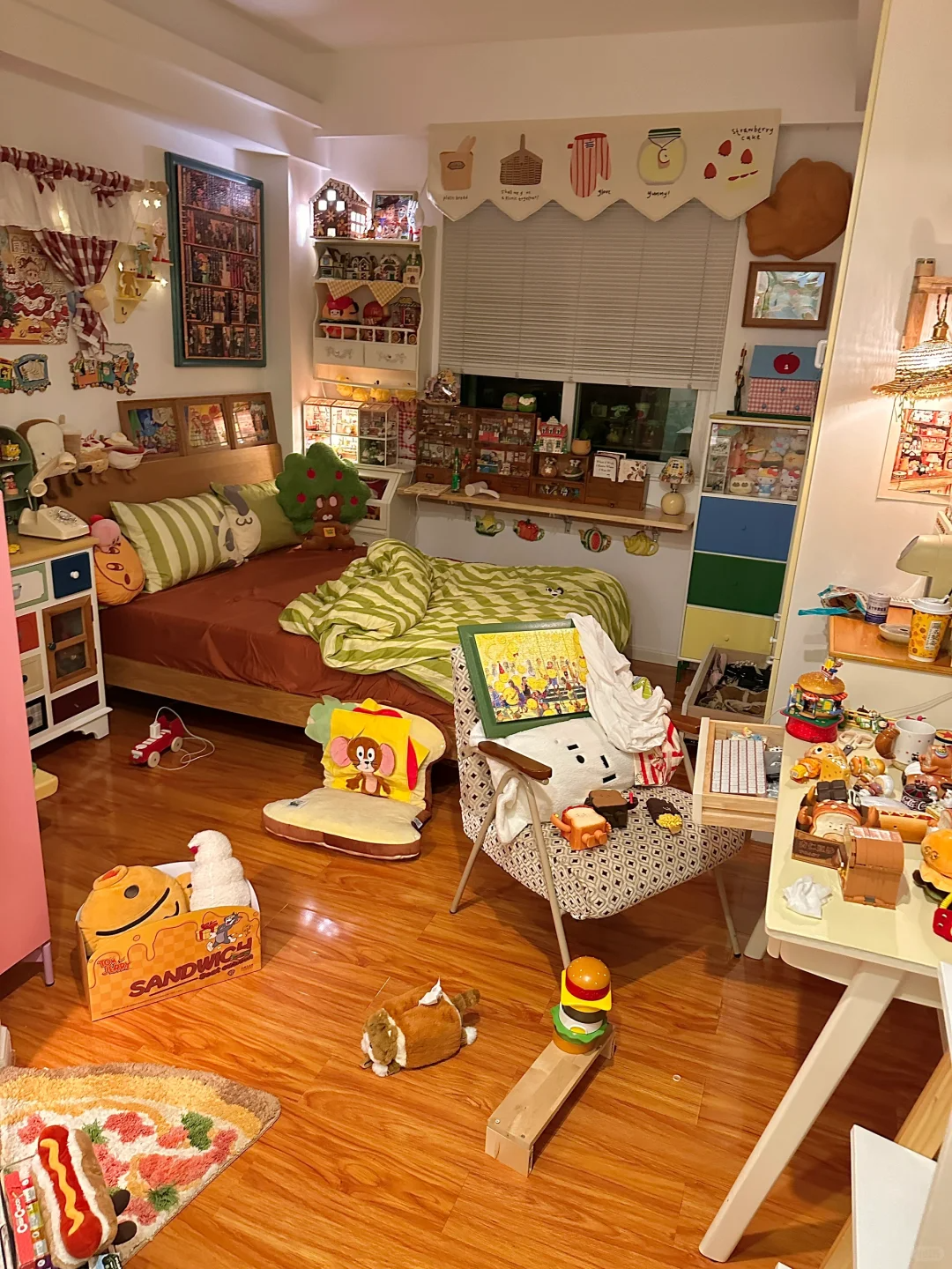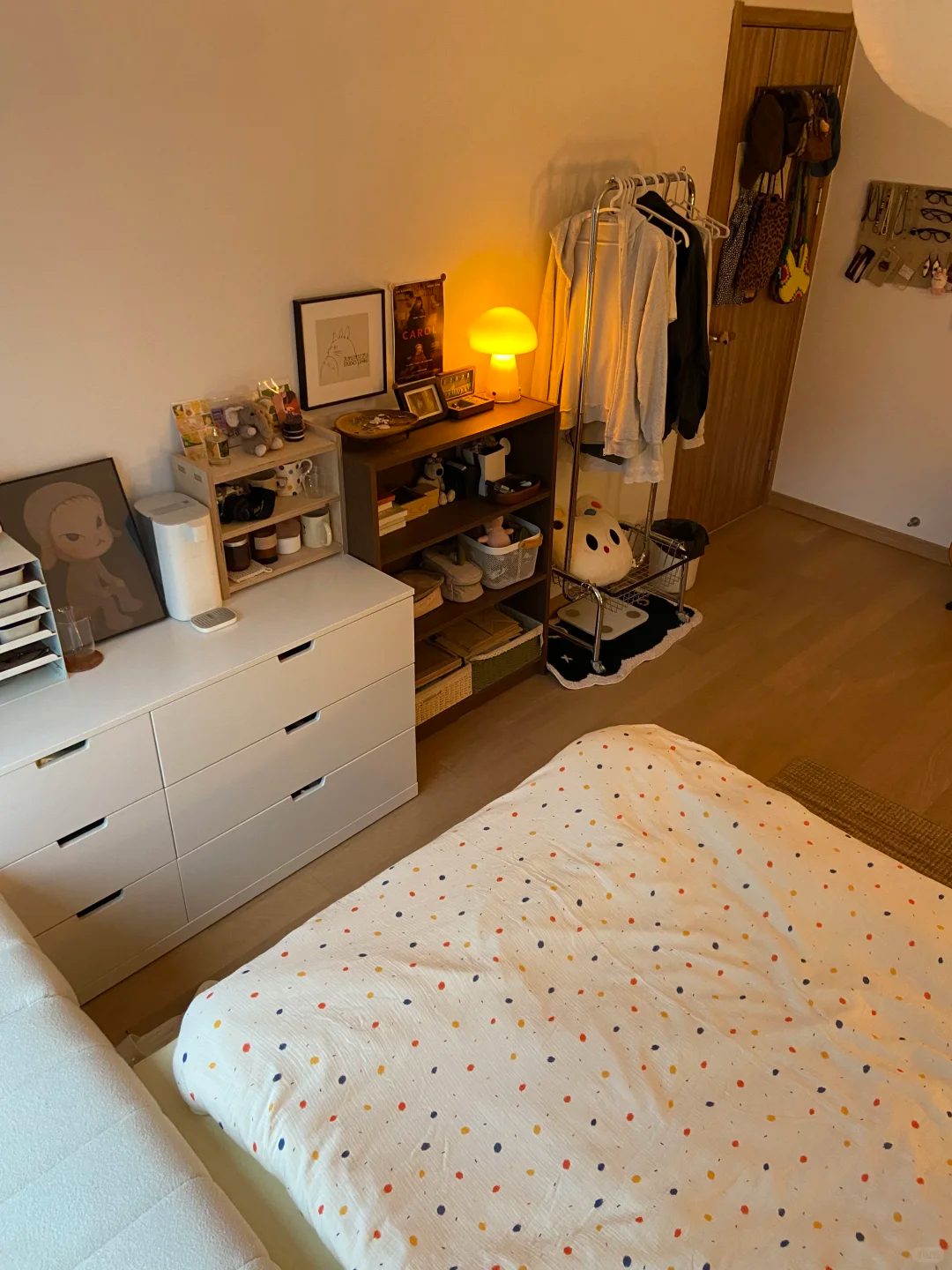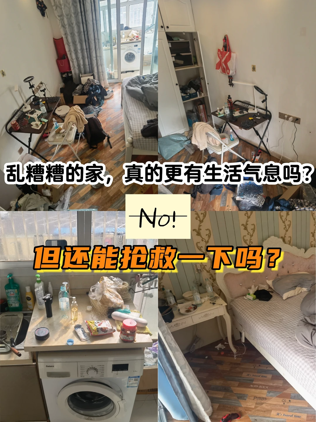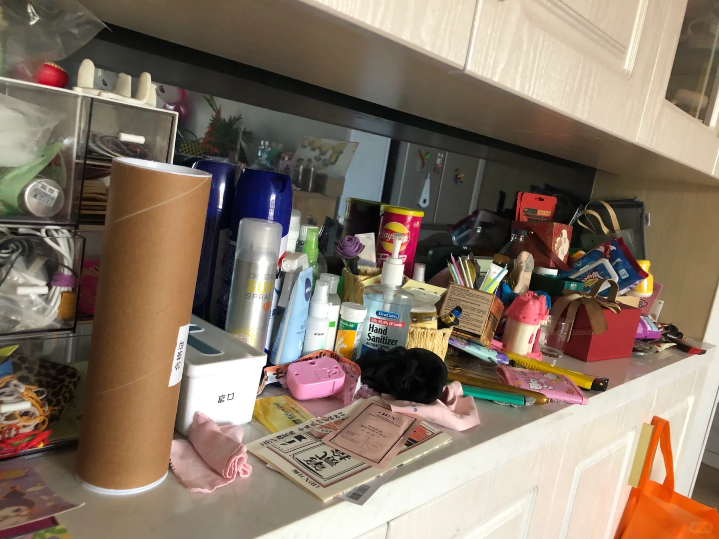 还有床边摆放着过期的护肤品小样,以及床头柜抽屉里那些无用的杂物和上面的装饰摆件等等。