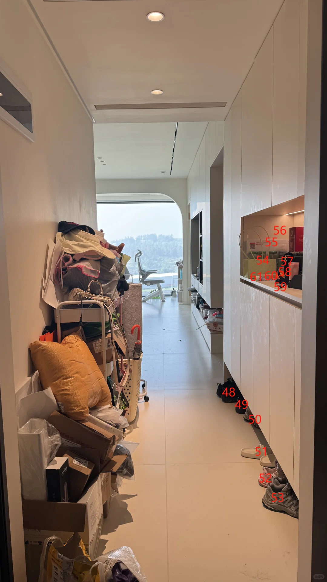 鞋柜上方过期的口罩以及酒精,质量不好的雨伞,以及穿了很久或者是已经破损的鞋子,多余的鞋盒,还有鞋柜里已经消耗完的除味剂和变质的鞋油。