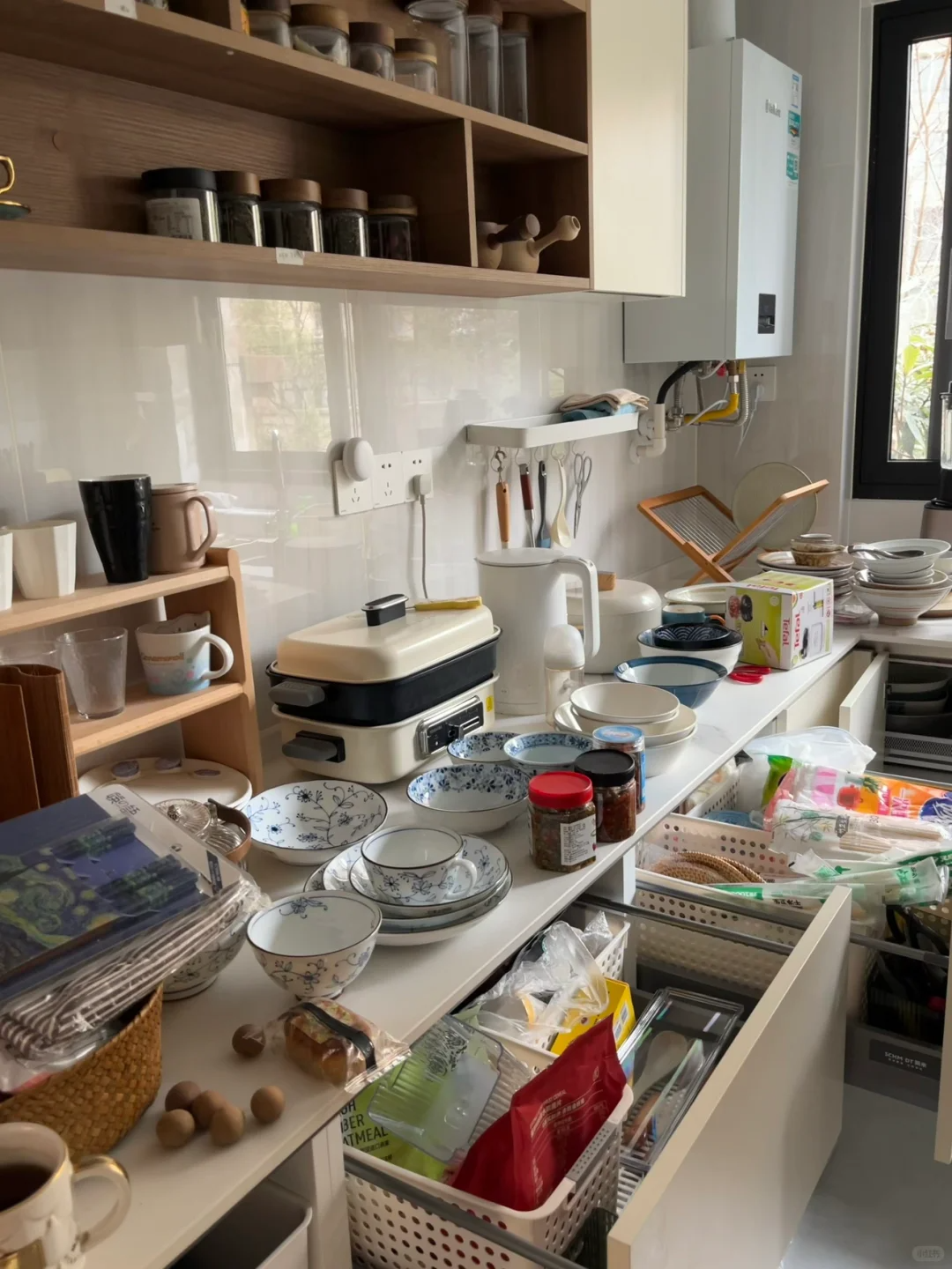 另外就是坏掉和用不上的厨房小家电,以及发霉的筷子砧板和擀面杖,使用率很低,不喜欢的锅碗瓢盆等等。厨房宽敞了,做饭的心情也好了~