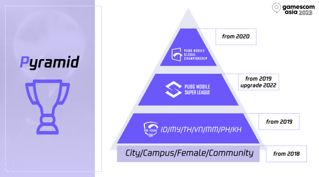 在电竞生态系统搭建过程中,Level Infinite也在不断改进,让各国、各地区选手之间更具竞争性,提升赛事的观赏性之余,也让“金字塔”更加稳固。为了进一步加强赛区之间的竞技,激发其对本土荣耀的捍卫,Level Infinite在地区锦标赛引入了“PUBG MOBILE 超级联赛”,以创造更多舞台机会,塑造更多电子竞技故事。