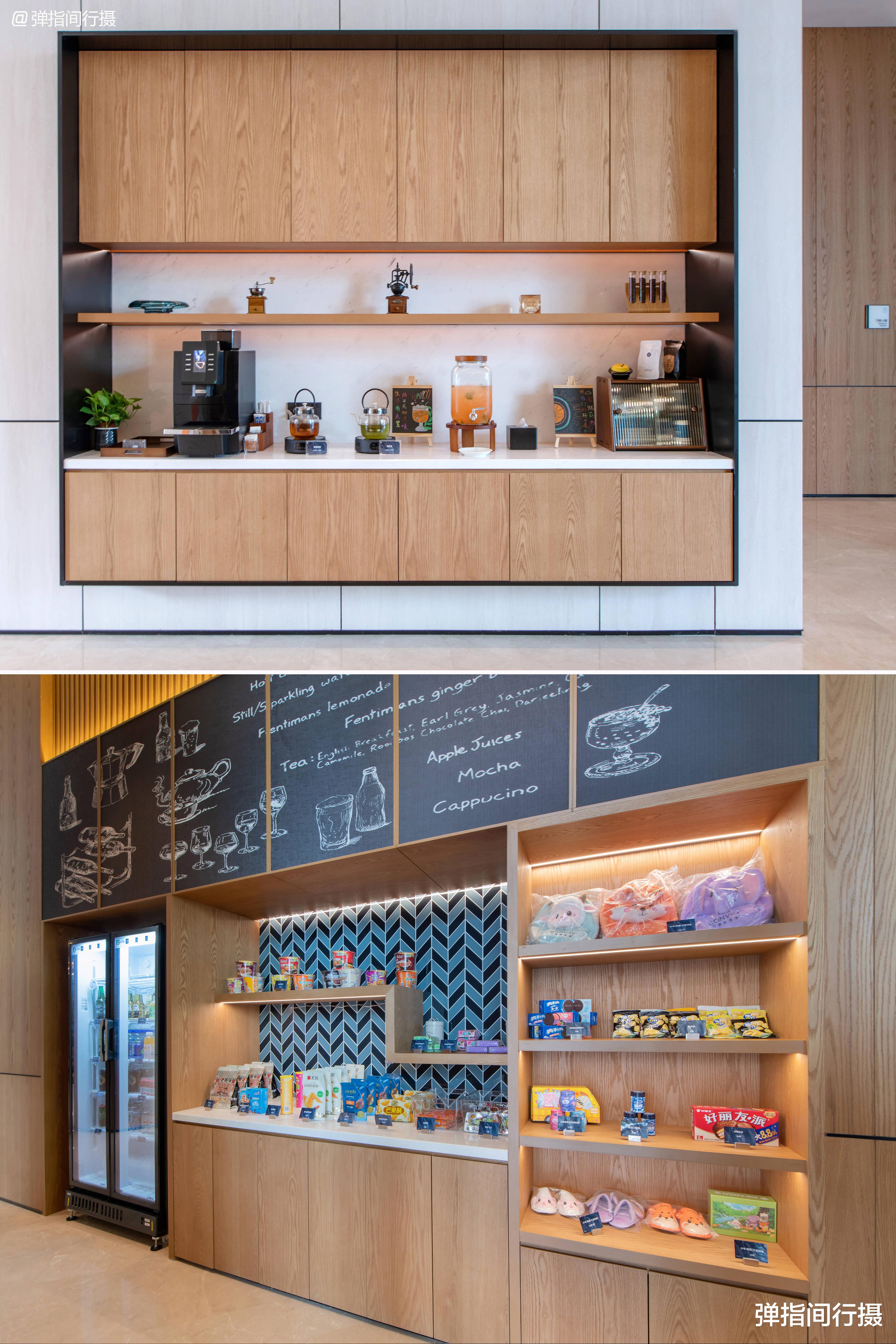 开放式的大堂设计巧妙,虽然没有繁复装饰,但科学地划分了多个功能区。前台、休闲区、“薪水”区和万枫小铺一应俱全。特别要提的是“薪水”区,提供免费的茶水和咖啡,让我这个咖啡爱好者实现了“咖啡自由”。旁边的万枫小铺24小时营业,零食饮料和日用品都能便捷购买,对晚归的旅客特别友好。