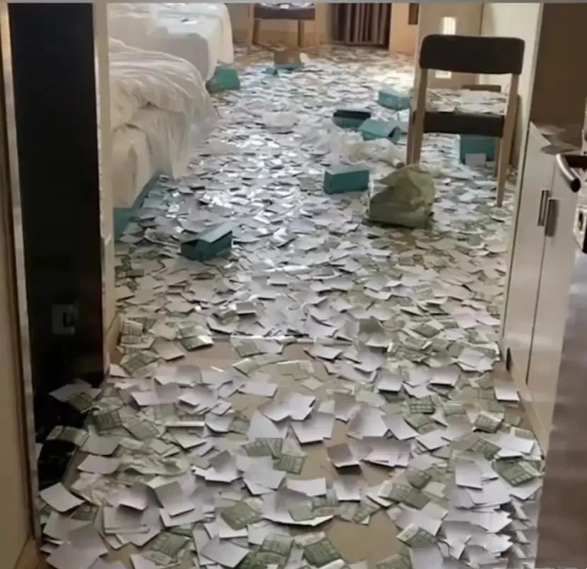 上海一家酒店发生一起令人震惊的恶意破坏事件。一位房客退房后,保洁员在清理房间时发现整个客房被密密麻麻的贴纸覆盖,从地面到墙面,甚至连卫生间都未能幸免。现场画面显示,各类"高价回收"小广告贴纸层层叠叠,将客房变成了"贴纸海洋"。
