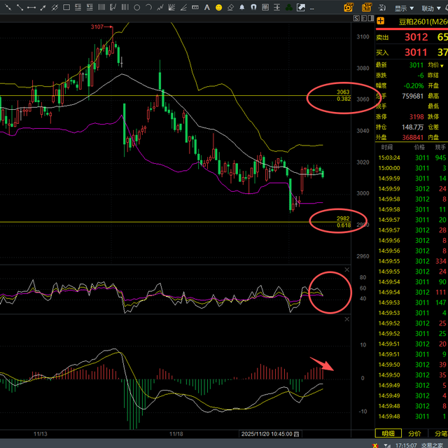 基本面:国内大豆供应宽松,油厂开机率维持高位,导致豆粕产量较大。同时,豆粕库存仍处约100万吨的偏高水平,去库节奏缓慢,对价格形成持续压制当前处于饲料消费淡季,且生猪养殖行业亏损导致养殖户补栏积极性低,饲料企业多采取刚需采购策略,追涨意愿不强。技术面:当前豆粕市场主要由“弱现实”和“强预期”两股力量拉扯,导致价格缺乏明确方向。国内沿海地区豆粕现货报价多在 2980-3040元/吨之间运行,整体持稳。