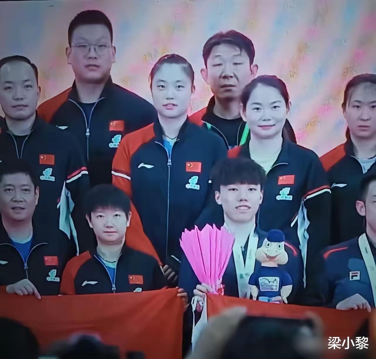 而亚锦赛大合影,陈颢桦就水灵灵地站在了孙颖莎的旁边。