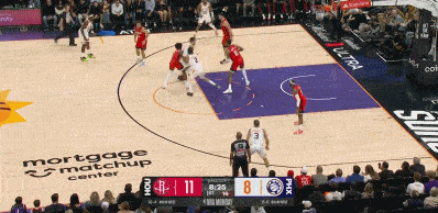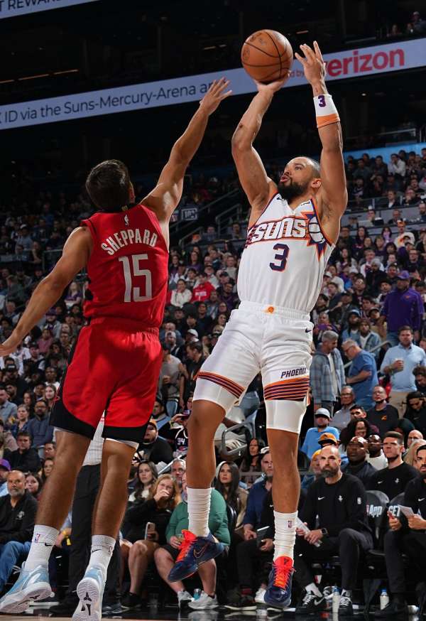 易边再战,狄龙跳投命中,谢泼德和奥尼尔先后命中三分,汤普森打成2+1,申京连续补篮得手拉开到14分。布克和古德温连续得到4分,史密斯连续得手稳住局面,狄龙造犯规两罚全中,奥科吉投篮得手,狄龙一人独得5分缩小分差。汤普森两罚全中,伊戈达罗和奥尼尔连得5分,布克两罚全中缩小到5分。亚当斯、JD-戴维森和申京打出6-0稳住局面,布克两罚全中后,火箭队84-75领先太阳队结束第三节比赛。