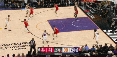 首节开始,理查兹补篮得手,奥科吉连得4分,布克命中三分后。申京和谢泼德连续得分,古德温命中三分扳成8-8!申京命中三分,理查兹投篮得手,汤普森和狄龙先后得手,汤普森再次上篮命中后,布克命中三分,双方再次战平。随后奥科吉和霍勒迪连续命中三分,布克和吉莱斯皮连续跳投得手,布克命中罚球。汤普森完成扣篮,亚当斯补篮得手,吉莱斯皮命中三分后,霍勒迪连续命中两记远射,火箭队30-23领先太阳队结束首节。