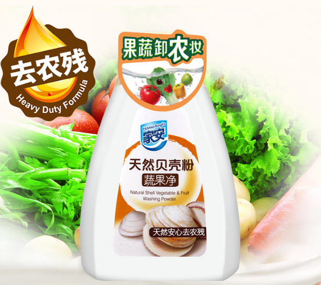 4. 家安贝壳粉果蔬净洗洁精——兼顾餐具的多面手核心优势:食品级配方,可清洁果蔬+餐具,一物两用