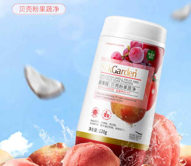 3. 蔬果园贝壳粉果蔬净——高性价比的家庭刚需款核心优势:可去除99种农残,价格亲民,用量省