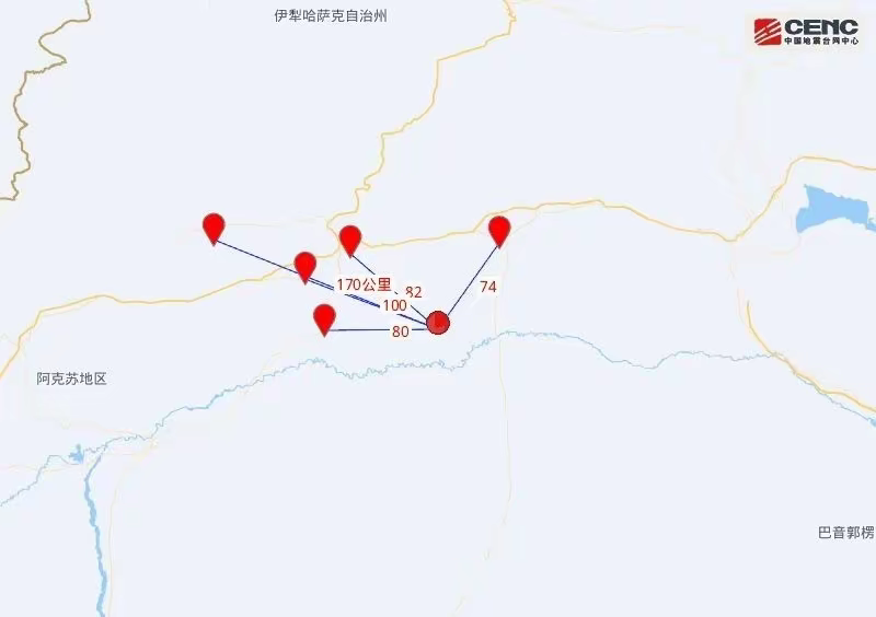 据测定,震中距最近的塔里木乡仅有13公里,震中与轮台县的距离为74公里,沙雅县和库车市分别为80公里和82公里,新和县的距离为100公里,而拜城县和铁门关市则距离震中分别有170公里和176公里。尽管震中距离较远的城市可能受到的影响较小,但还是提醒大家保持警惕,注意安全。