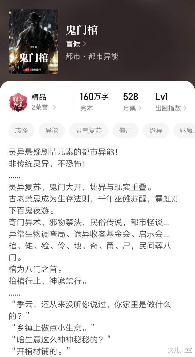 作者之前写过万订小说《机械炼金术士》《灾变卡皇》等作品,写灵异倒是第一次来着。