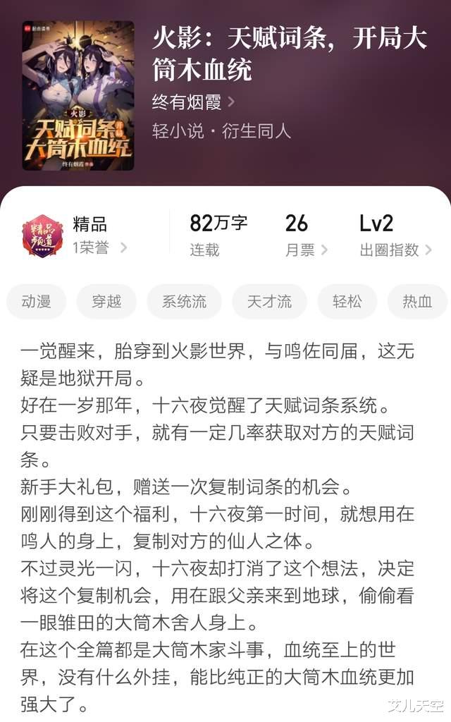 1、《火影:天赋词条,开局大筒木血统》82万字完本