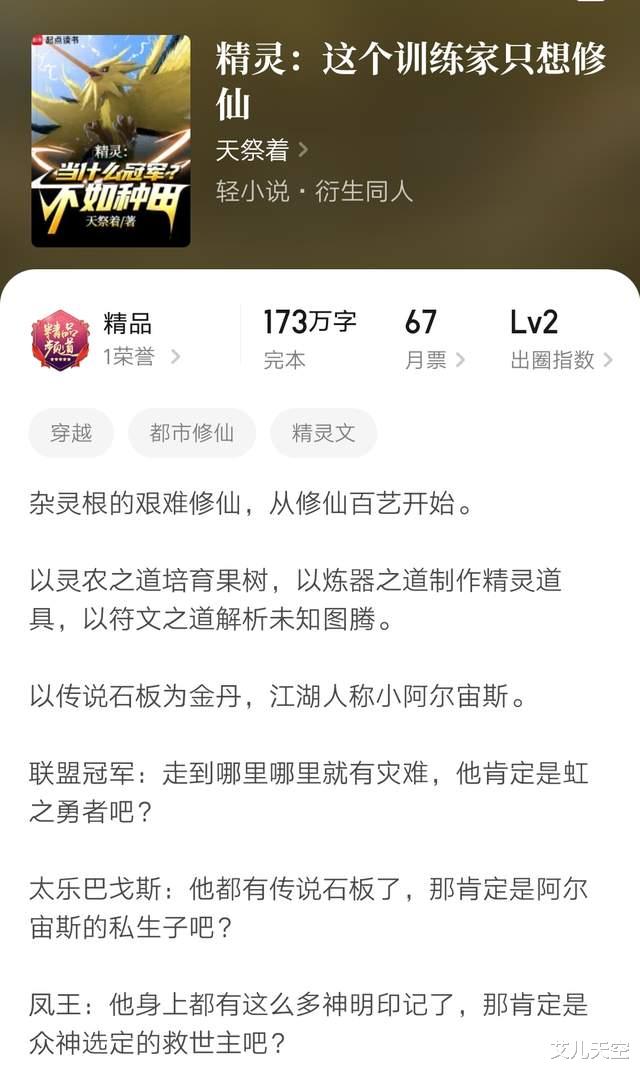 9、《精灵:这个训练家只想修仙》173万字完本