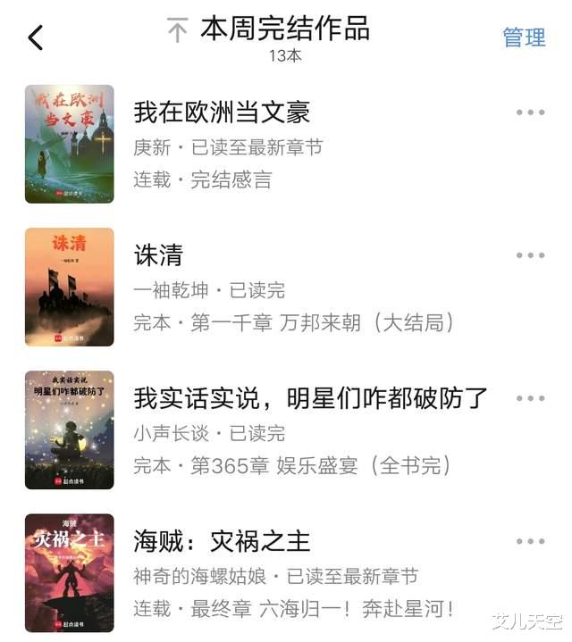 汇总一下这周完结的一些小说,只有十多本,很多之前也都说过,只是周末惯例汇总一下,感觉比上周还要冷清。
