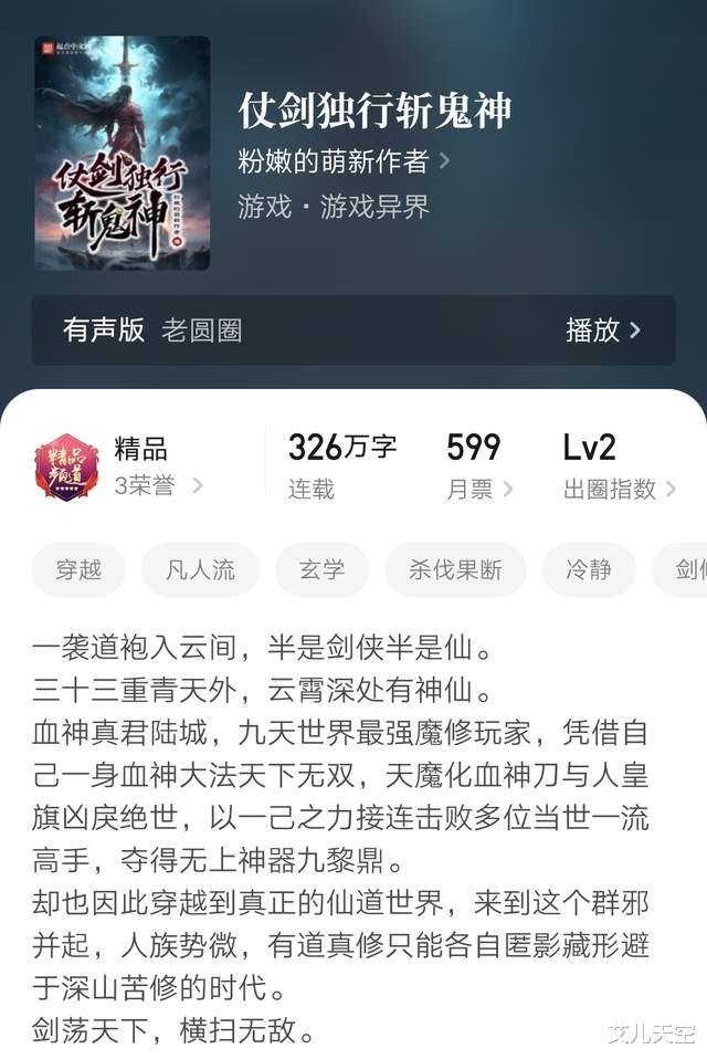 4、《仗剑独行斩鬼神》326万字完本