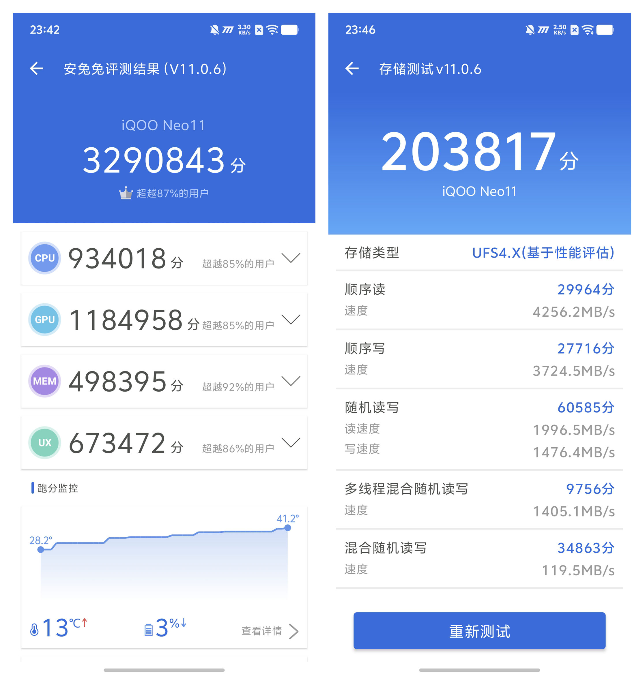并且在散热方面,iQOO给到了8K冰穹 VC 液冷散热系统,相当于可以在10 秒就让手机的温度降下来 15℃,亲测,在连续玩了1个小时的游戏,机身也只是温热,机身背部温度最高不超过37℃,完全不会烫手。说实话,这次iQOO Neo11我觉得完全就是一台同档位最强的游戏手机,非常适合游戏党用户使用。
