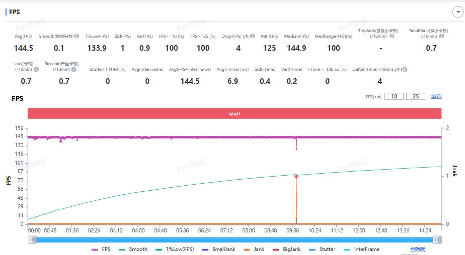 我实测用iQOO Neo11玩《王者荣耀》,是可以极致画质和 144FPS 玩的,超高的帧率,这个玩起来要比普通手机爽多了,连续玩 1 小时平均帧率可以稳定在 144.5FPS,几乎是一条直线,没有任何波动,技能连招相当丝滑,没有卡顿掉帧的感觉。