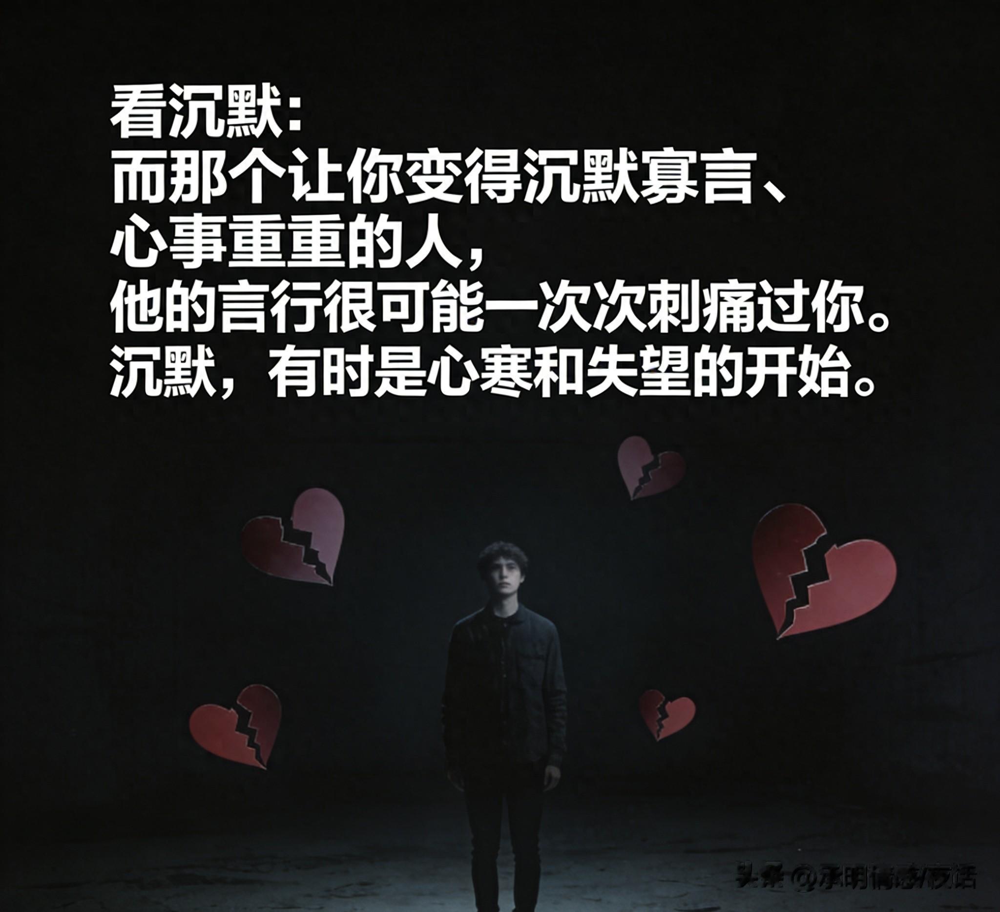看沉默:而那个让你变得沉默寡言、心事重重的人,他的言行很可能一次次刺痛过你。沉默,有时是心寒和失望的开始。