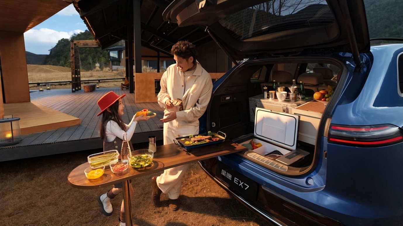 周末带娃去露营,后备箱688L,放倒二排1835L,很多车都有。但EX7多了一个122L下沉空间+90L地毯下层盒+32L储物格。帐篷烤炉放上面,零碎小物件藏下面,后备箱清清爽爽。更绝的是那个9.2L车载冰箱,-18℃到50℃宽温域——出发前冻几根冰棍,到了营地孩子就有得吃。而盲订正好赠送车载冰箱,这波福利等于省了一两千块。