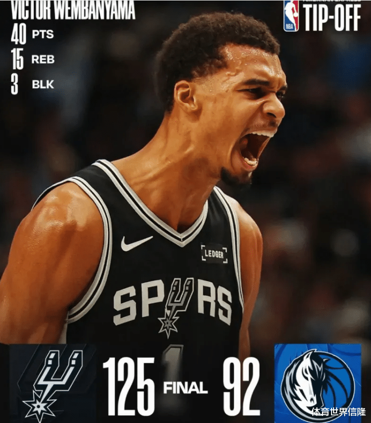 赛季第一场比赛,文班亚马面对莱夫利和浓眉的超级双塔就砍瓜切菜般狂砍40分15板3封盖而且失误数为0!更离谱的是他的命中率高达71.4%,出场时间居然不足30分钟!