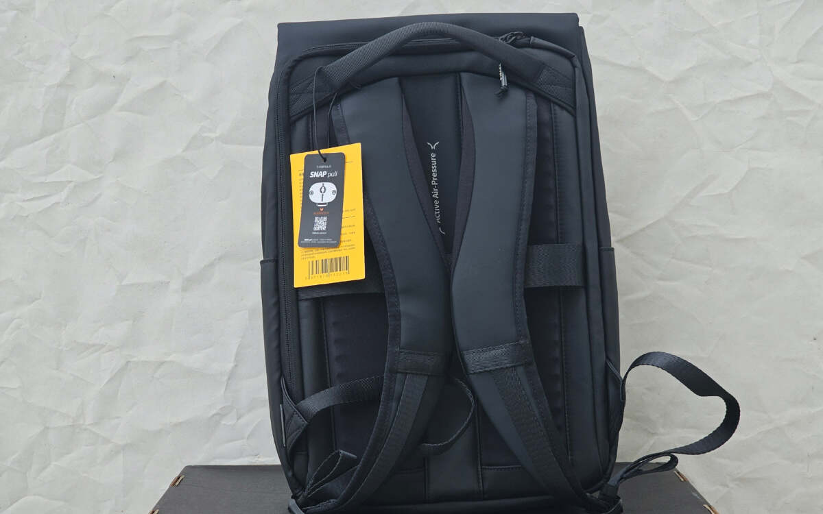 包装方面:外层是定制的快递盒包装,内层是黑色的纸箱包装,搭配金色的logo,属于地平线8号一贯的设计风格。然后是防尘袋,一张宣传卡片。双肩包的内部还有一个充气袋,避免空包没有支撑,以保持外观的挺括。