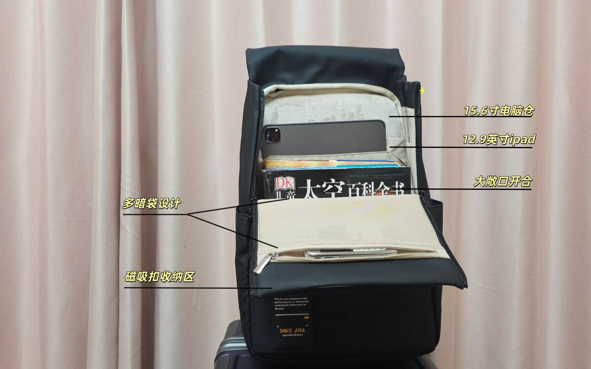 容量方面:容量的大主要体现在背包本身的尺寸,厚度,以及收纳功能的设计。越大、功能越多的包相对会越重;外观可能更复杂,内部多隔层的设计也存在一些便捷性的问题。如果日常的电脑是轻薄本,那么可以有独立电脑分区,不需要过度复杂的收纳设计或者说背包的厚度。