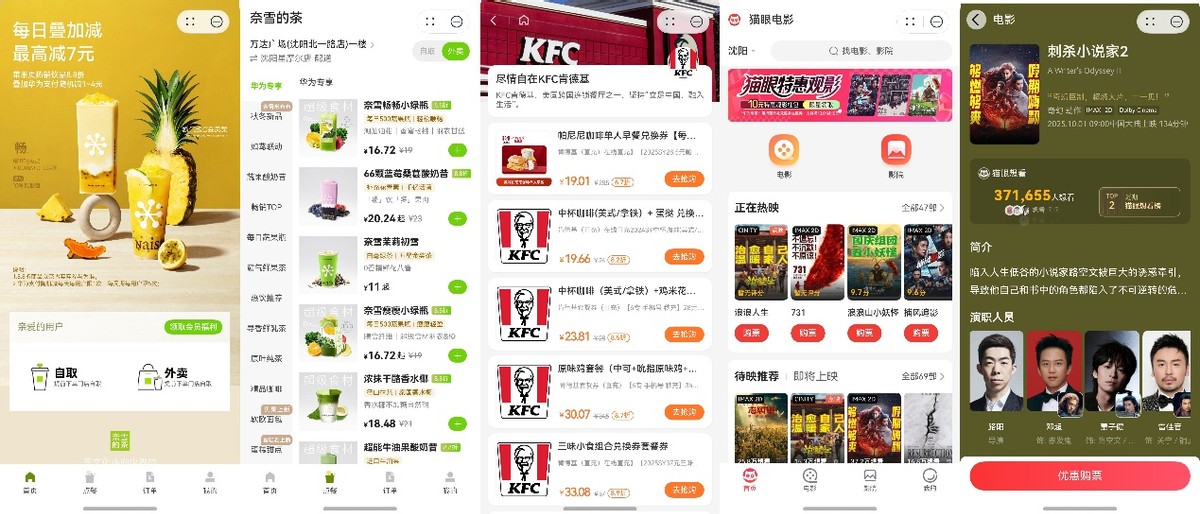 城市漫游期间,逛到腿酸想喝杯小甜水解乏?直接在负一屏的瑞幸、奈雪的元服务点单就好,不仅有日常随机减的小惊喜,周末还能享固定4元立减,不用凑单也能喝得实惠。要是饿了想吃点垫垫肚子,打开“及刻周边惠”元服务,附近餐厅的超多折扣券一目了然;就连想看国庆档电影,“猫眼电影”元服务也能直接选座买票,付款时还能享立减优惠,不用来回切换平台比价,省时又省钱,刺杀小说家2我期待已久,国庆必刷。