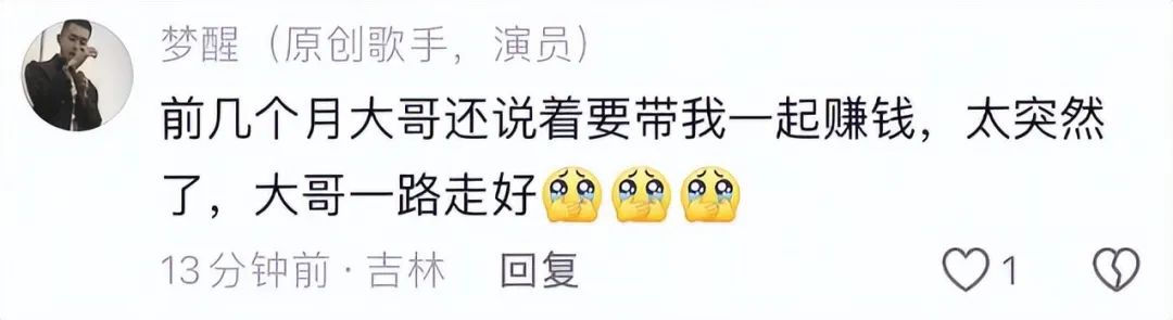 次日下午,与其有过深厚合作的演员杨志刚在社交平台发文悼念:"连生兄,一路走好。心疼,心痛。"短短十个字,道尽了对故友离去的不舍与哀思。