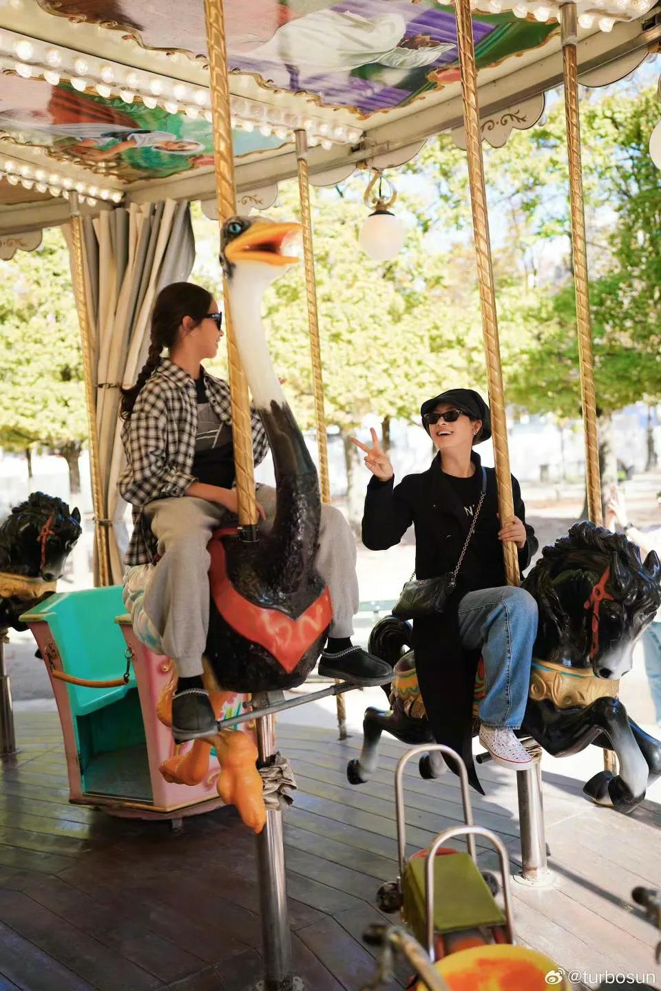 孙俪还带着女儿一起坐了旋转木马,母女俩一起游玩好欢乐。孙俪对着小花比剪刀手,脸上露出灿烂笑容,看起来好美。小花脱下外套,穿着格纹衬衫,戴着墨镜星范十足,跟妈妈互动时脸上露出甜笑,虽然只露出一个侧脸,看起来跟爸爸邓超还是挺像的呀。