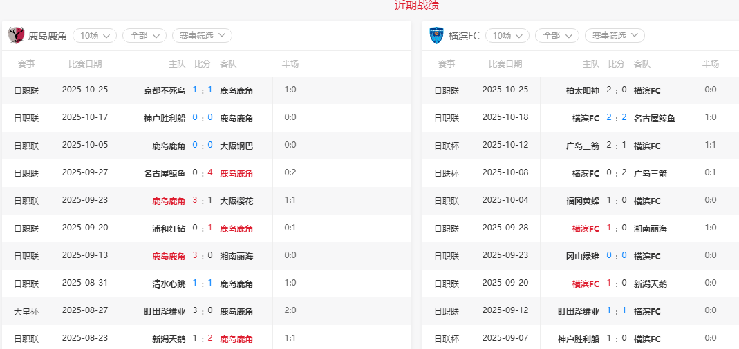 鹿岛鹿角 VS 横滨 FC 比赛前瞻2025 年 11 月 8 日 13:00,日职联第 35 轮,鹿岛鹿角将坐镇主场迎