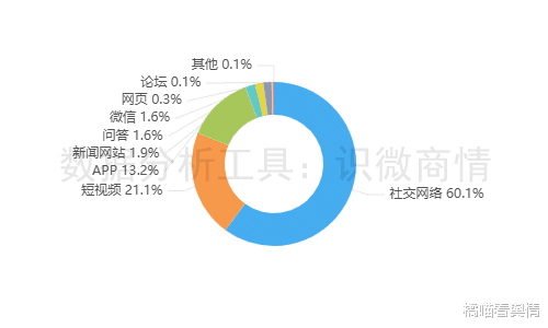 该时段内,有关“大疆降价引维权事件”的舆情主要集中在社交网络平台,约占60.1%,其次为短视频(约占21.1%),新闻APP(约占13.2%)。