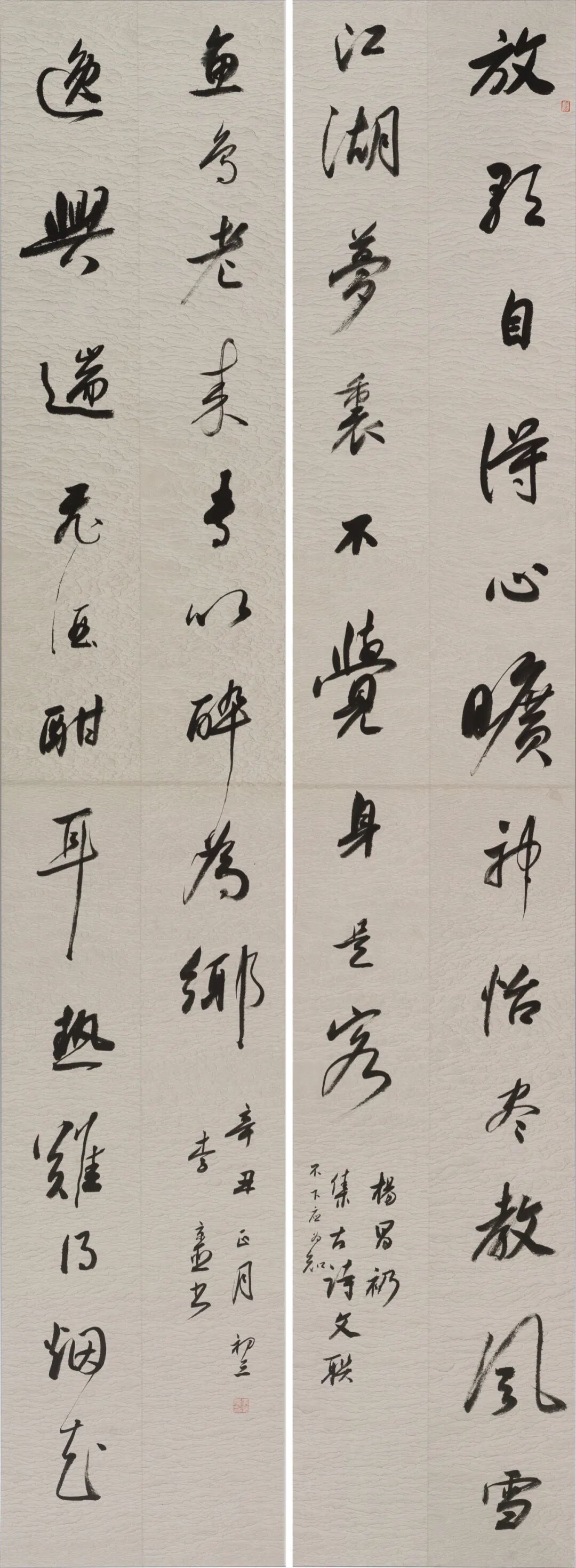 在技法上,他特意拉大字距和行距,追求一种疏朗阔达的章法效果,不刻意制造强烈的视觉冲击,而是于平和简静中见韵味 。他的用笔追求虚和、灵动,用墨讲究淡雅、秀润,整体风格指向清新俊雅、萧散简远的意境 。