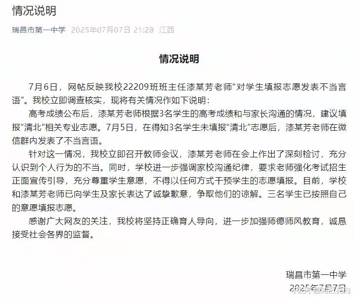 江西瑞昌一中那场闹剧,表面看是老师骂学生自私,学生嫌老师功利,扒开来看全是糊涂账!学校把学生当KPI工具,学生把承诺当擦嘴纸,最后撕破脸了才想起讲道理?晚啦!要我说,这事三方没一个干净,但最该骂的是整个稀里糊涂的破制度!