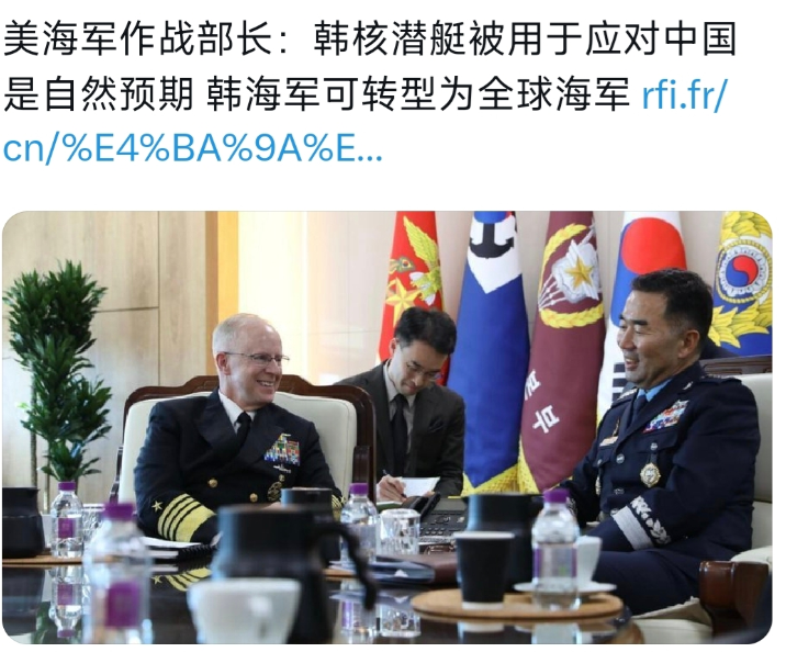 美国海军作战部长考德一句“韩国核潜艇被用于应对中国是自然预期”