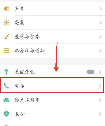 2、进入到设置页面后,点击:电话。